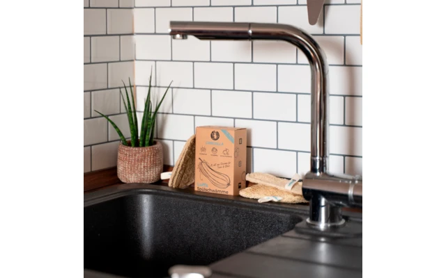 Les éponges de cuisine Chinchilla en éponge loofah et en coton te permettent de nettoyer sans plastique, proprement et facilement la vaisselle, les surfaces et plus encore. Les éponges à vaisselle sont réutilisables, lavables et peuvent être facilement jetées dans les déchets biologiques ou dans le compost après une utilisation intensive, car elles sont composées à 100 % de matériaux naturels – ton alternative aux éponges ménagères traditionnelles en plastique !