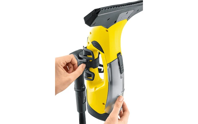Vous pouvez désormais nettoyer confortablement les fenêtres hautes, les impostes et autres surfaces lisses difficiles à atteindre, sans devoir monter sur une échelle : C’est possible grâce au kit de rallonge télescopique pour notre aspirateur de fenêtre sans fil et notre balai vibrant sans fil. Le kit se compose de 2 tiges télescopiques, d’un support articulé flexible pour l’aspirateur de fenêtre et la raclette sans fil ainsi que d’une raclette avec chiffon en microfibres. Le kit offre une portée supplémentaire de 1,5 mètre, ce qui permet aux personnes de petite taille d’effectuer sans problème les travaux de nettoyage dans les habitations, les maisons ou les jardins d’hiver jusqu’à une hauteur d’environ 3,5 mètres.