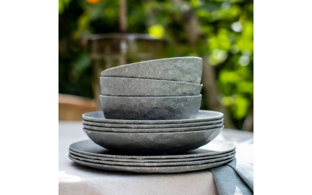 L’assiette universelle pour les garden-parties, les pique-niques ou le glamping et toutes les occasions qui se déroulent de préférence à l’extérieur. L’extérieur présente une structure à facettes vivante et sa qualité solide ainsi que sa large surface d’appui donnent à tout moment et partout le sentiment d’un repas de qualité. Idéal pour toutes les activités de plein air où l’on ne peut pas se passer d’une vaisselle élégante.