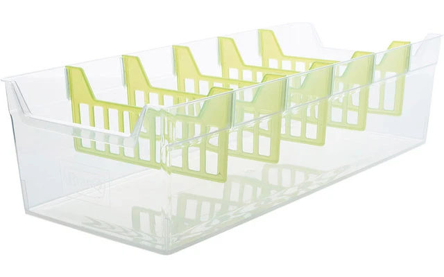 Récipient léger pour épices permettant de trier et de ranger les shakers ou les recharges d’épices. Avec des séparateurs amovibles pour une mise en rayon idéale