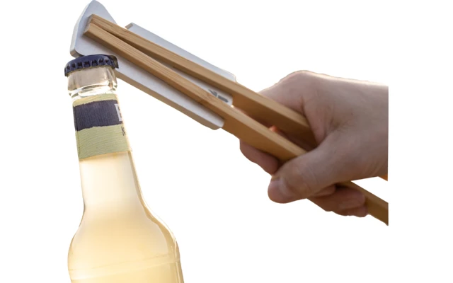 La pince à barbecue pour ton barbecue SKOTTI : démontable comme tout ce qui vient de SKOTTI, fabriquée en bois de bambou solide et en aluminium de haute qualité. Et pour que tu sois à l’aise : avec un ouvre-bouteille intégré dans la tête.