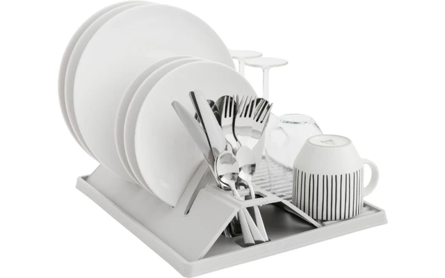 Cet égouttoir plat pliable est idéal pour laver la vaisselle en déplacement.