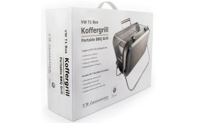 Mini gril de barbecue pratique pour le camping et les loisirs. Acier inoxydable 18/8 avec motif VW Bulli T1. Le mini barbecue se monte en quelques secondes et peut parfaitement être utilisé comme barbecue de camping, lors de pique-niques ou de festivals grâce à son format pratique de mallette. Grâce à sa taille pratique, il peut être rangé sans encombre dans le camping-car ou les bagages de camping et prend peu de place. La grille en acier inoxydable de haute qualité est également un merveilleux cadeau pour les fans de VW Bus ou les campeurs professionnels, grâce à son embossage VW Bulli et à sa bonne fabrication. Licence officielle Volkswagen et garantie de qualité.