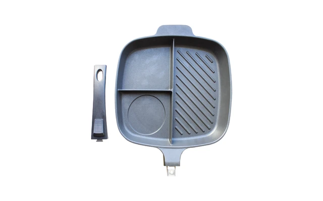 Cette poêle pratique est divisée en 3 zones, ce qui permet de préparer différents aliments en même temps.