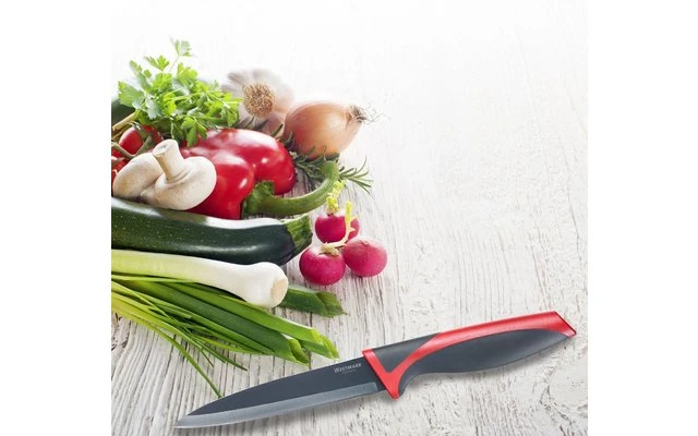 Couteau universel/de cuisine de taille moyenne, fonctionnel, avec lame étroite et tranchante pour couper, hacher, découper et éplucher les fruits, les légumes et autres.