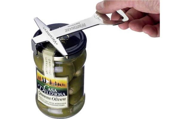 Ouvre-bocal polyvalent pour faire le vide dans les pots de confiture et de conserve, lève-couvercle à vis pour les couvercles jusqu’à 1,9 cm de hauteur, avec décapsuleur pour ouvrir les bouteilles avec capsules.